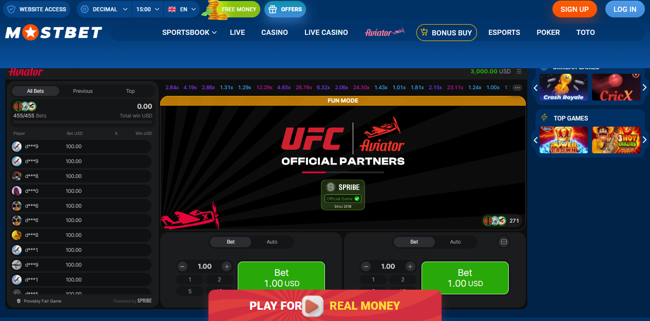 MostBet has a special section for crash games on its platform. When you visit its website, access this section, and you’ll see Aviator among the first three top options.